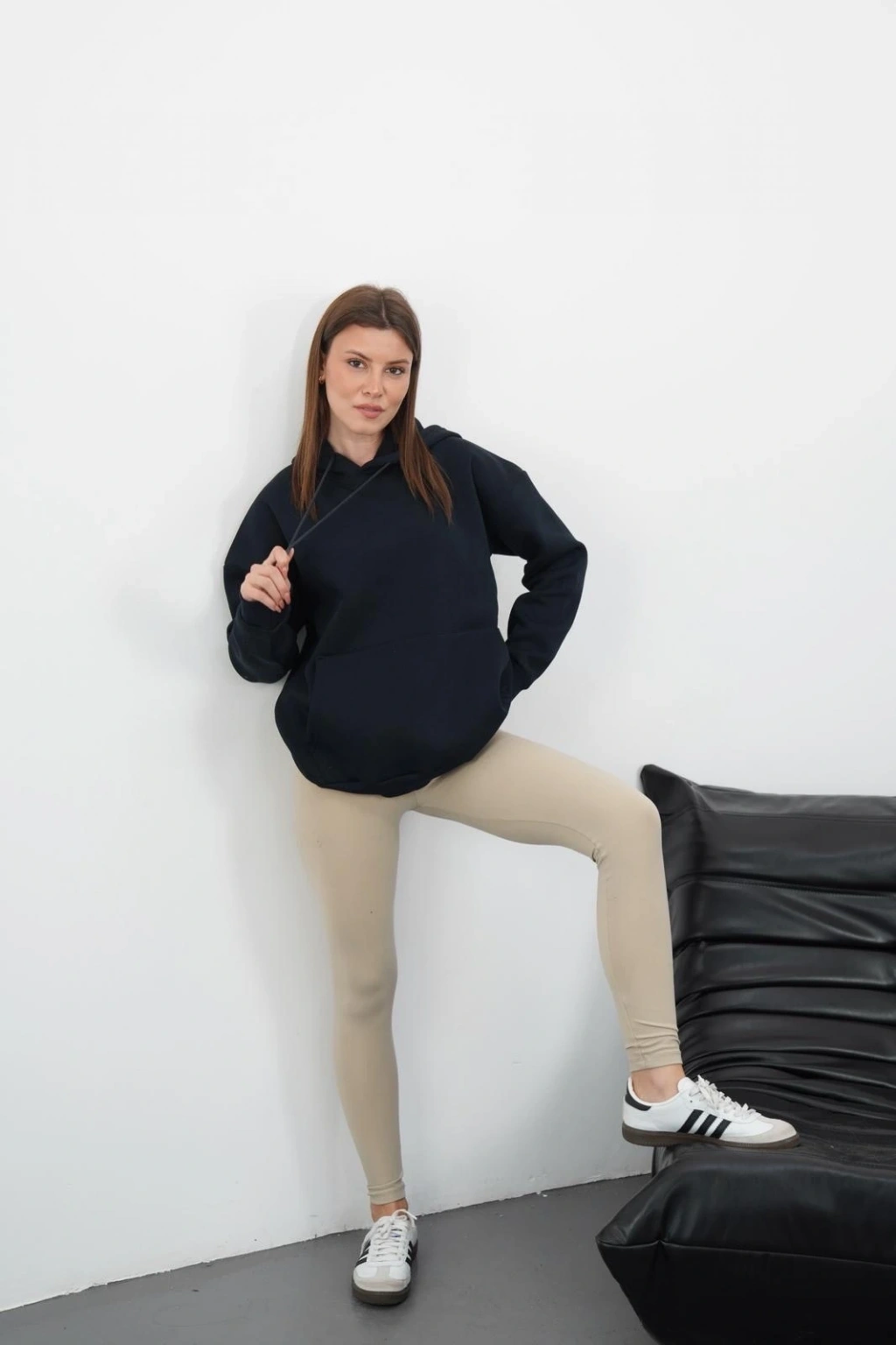 3 iplik şardonlu kapşonlu sweatshirt lacivert md63, rahatlığı ve şıklığı bir arada sunar. Kadın giyim kategorisinde yer alan bu ürün, şık tasarımıyla günlük kullanıma uygun bir seçenektir.