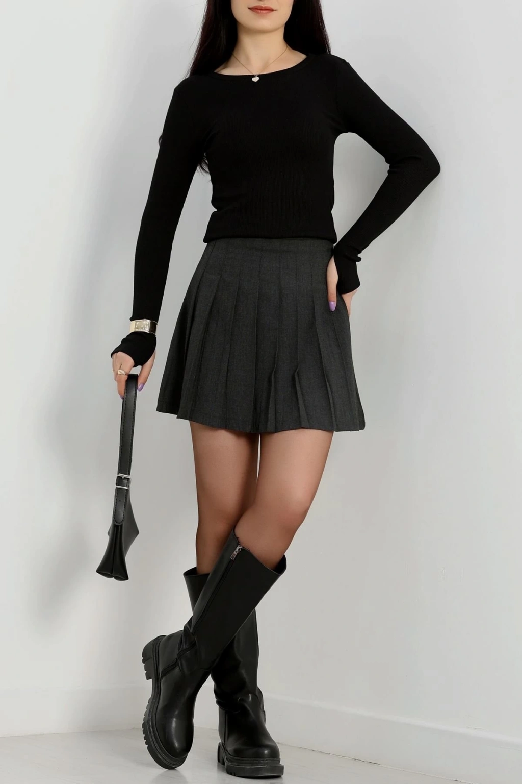 Bisiklet Yaka Parmak Geçmeli Kaşkorse bluz siyah a3829