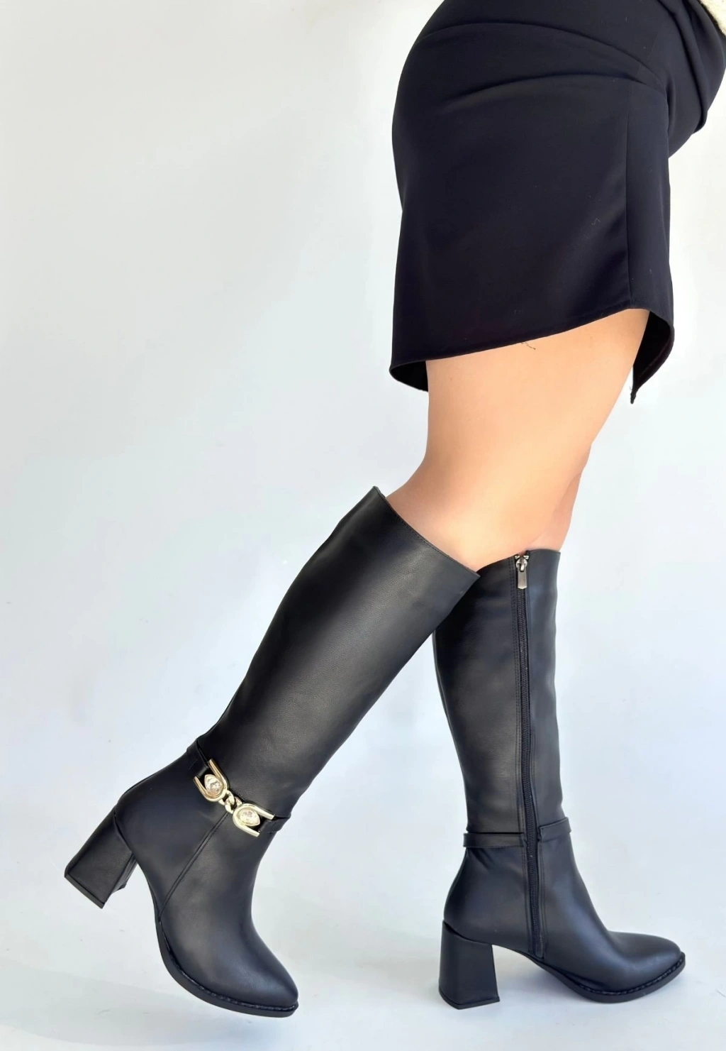 Detay : Topuklu Yandan Fermuarlı Diz Altı Çizme
