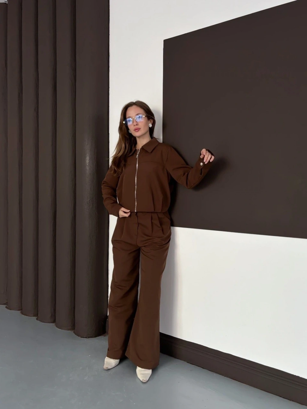 Şık ve şıklığından ödün vermeyen kadınlar için tasarlanmış Kahve Ons Trenç Takım, şıklık ve rahatlığı bir arada sunuyor. İster günlük şıklığınızda ister özel davetlerde tercih edebileceğiniz bu takım ile her ortamda farkınızı ortaya koyabilirsiniz.